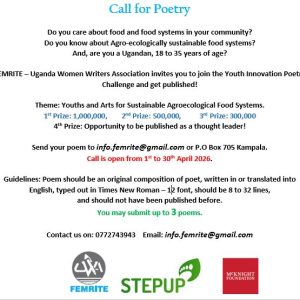 FEMRITE – Uganda Women Writers Association, with support of the McKnight Foundation, is running a poetry award for Youths on sustainable Agro-ecological Food Systems.